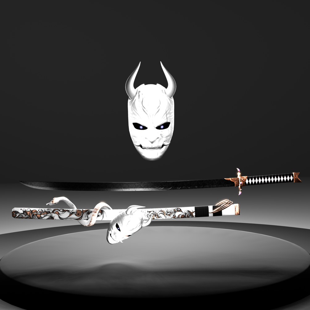3 materials (mask, sheith, and sword)