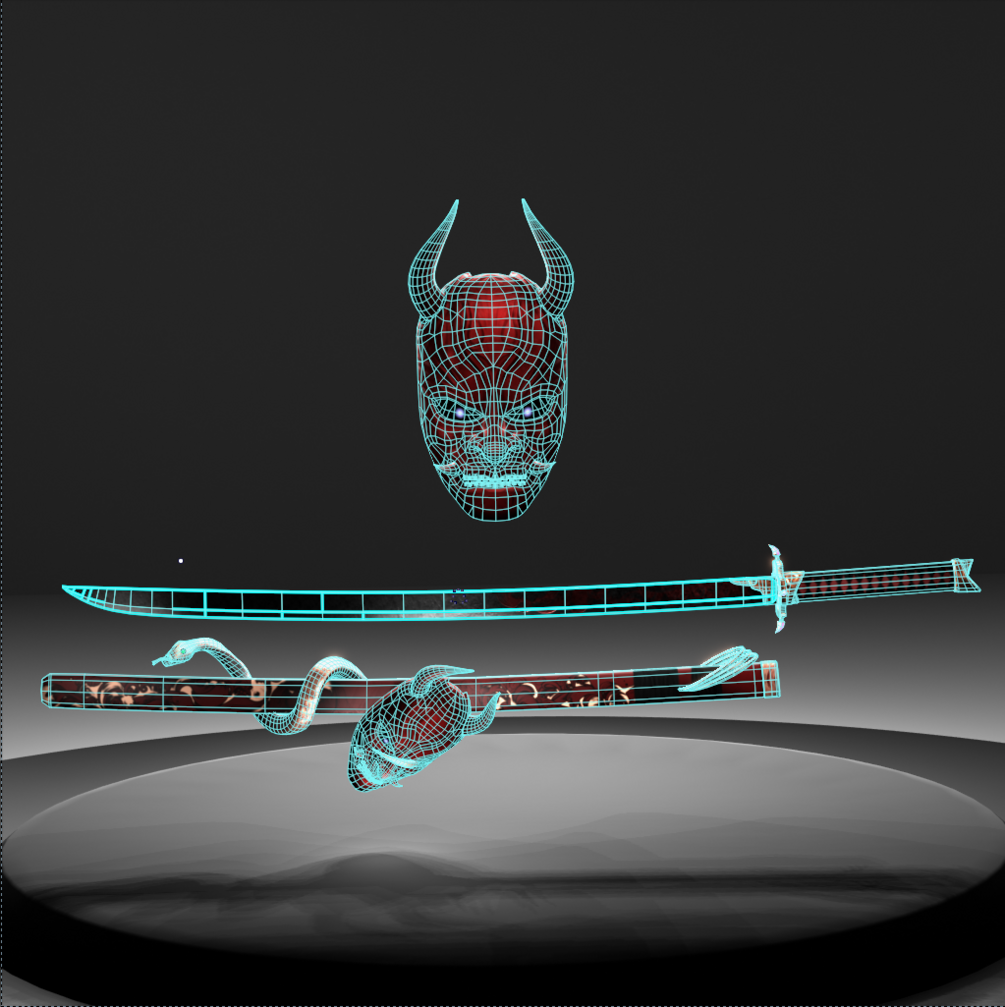 3 materials (mask, sheith, and sword)
